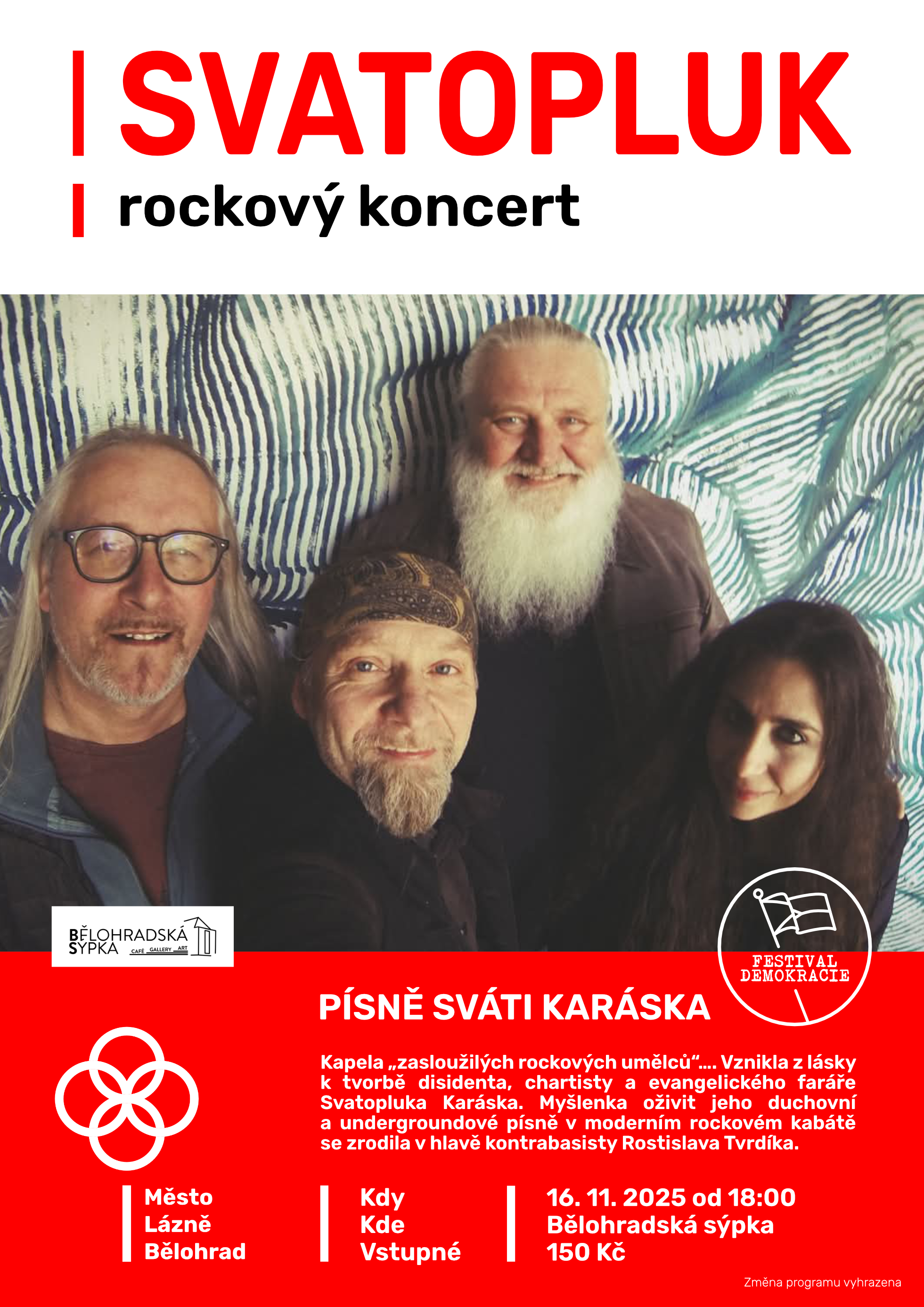 Koncert se koná v rámci akce Festival demokracie.